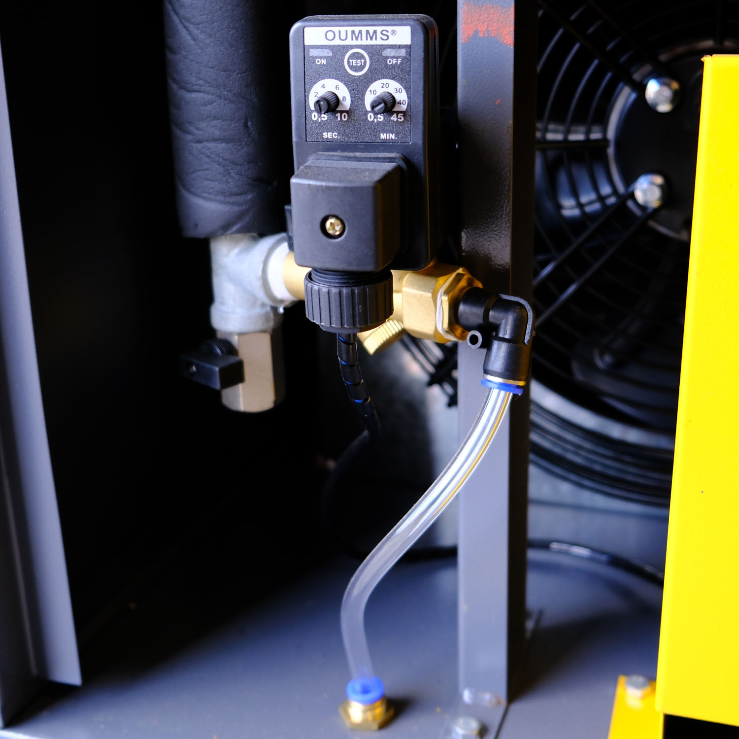 System wyposażony jest w automatyczny spust kondensatu sterowany elektronicznie. Zastosowanie specjalnego zaworu, metalowej siatki filtrującej oraz unikalnej metody zatrzymywania wody (przed spuszczeniem) zapewnia niezawodność i stabilność działania, minimalizując ryzyko cofania się kondensatu do układu.
